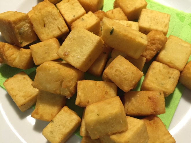 Chickpea fritters. These are typically pretty plain tasting so sprinkle on some salt, dip them in ketchup, or use them as a base for caponata