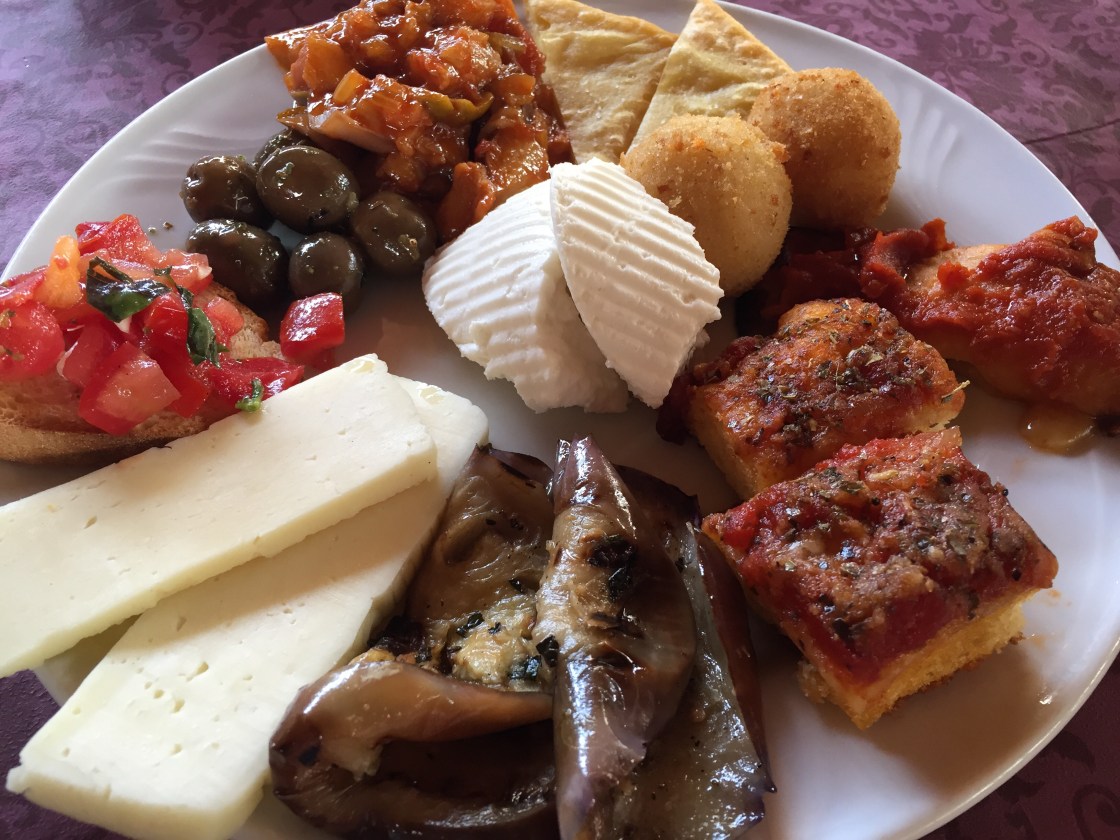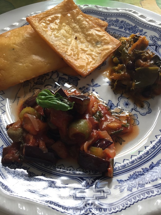 A tangy dip made from eggplant, olives capers, and tomato paste. Typically eaten plain or with bread. We learned how to make this in our cooking class in Palermo.