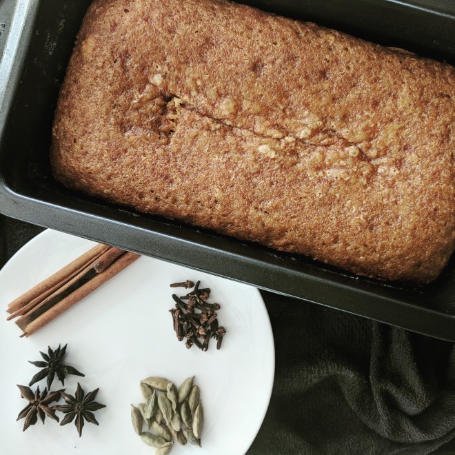 I was looking for a recipe with stout to try today when I saw this Cupcakes & Kale recipe for a gingerbread stout cake, inspired by the one at Grammercy Tavern in New York. I’m obsessed with ginger and spices, so I opted for this rather than my typical chocolate stout cake. I adapted it slightly, adding in star anise and infusing it in the stout-molasses mixture, along with the cardamom and cloves. I also added a pinch of salt and a tablespoon of freshly grated ginger for extra kick. I baked it in a loaf pan, lowered the temperature slightly and baked it for a full 50 minutes. I know that’s a long time but it’s worth it. This cake is bold and complex – spicy, sweet, and a little malty.