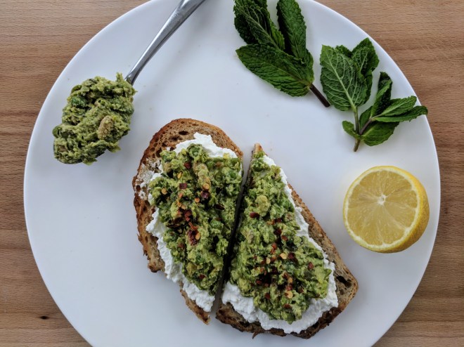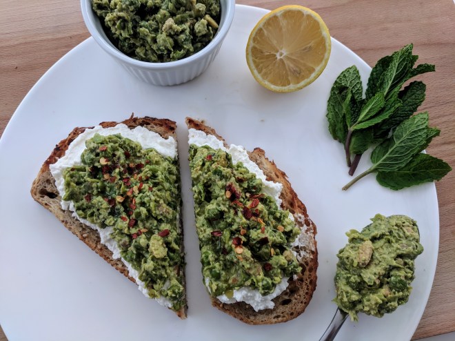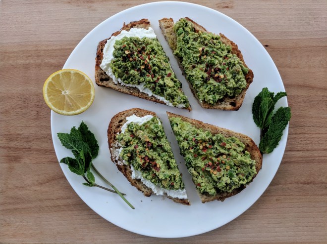 I initially thought I’d need ricotta for sure but the pea spread is plenty creamy and rich on its own. The ricotta is totally optional, so this recipe could work for the vegan and dairy-free friends.