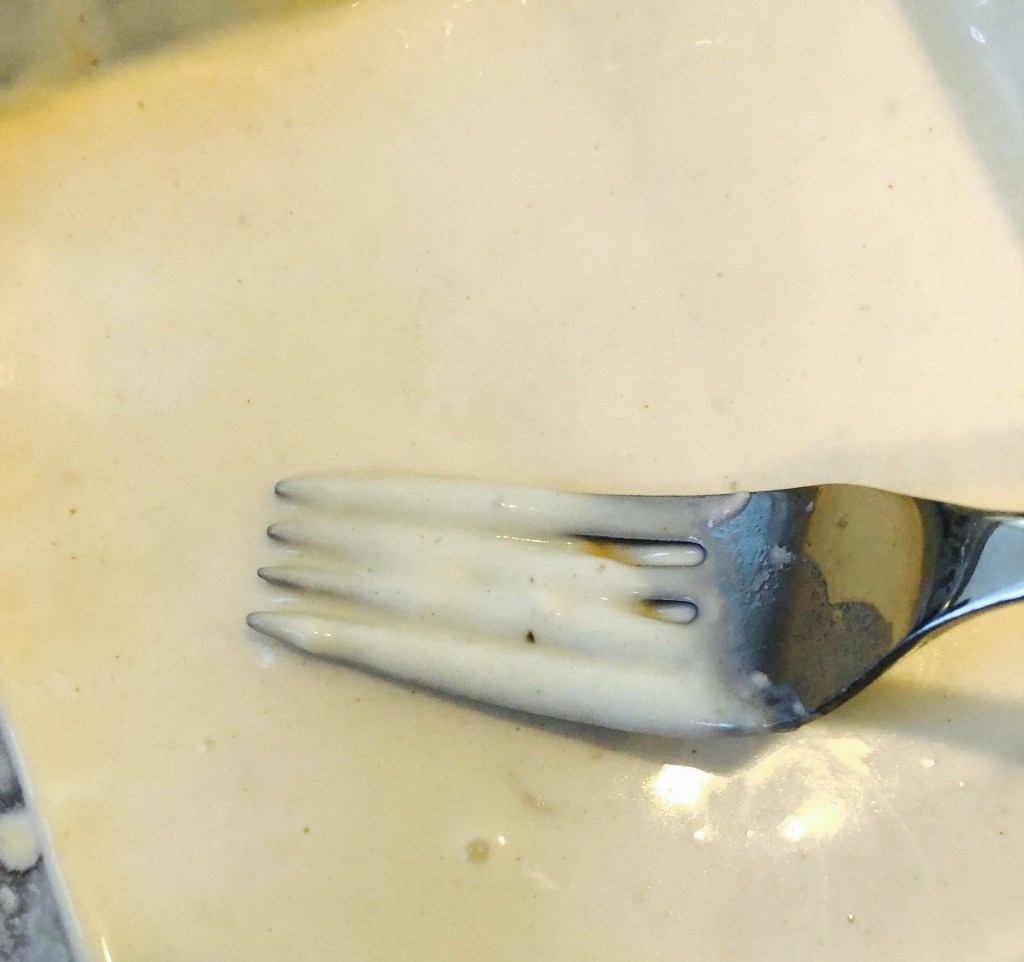 Then you stuff those risotto balls with mozzarella cheese and dip them in a batter of flour and water. Your batter should look something like this, kind of like a waffle batter.