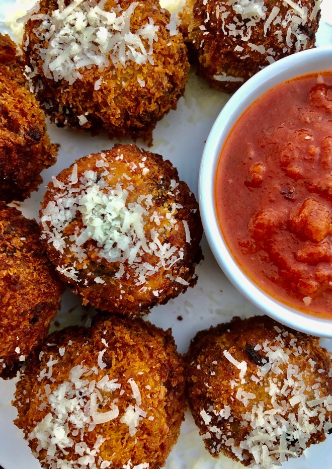 I won’t lie, making arancini is a labor of love, but it’s worth it. These Sicilian fried, stuffed rice balls are a delicious appetizer or snack.