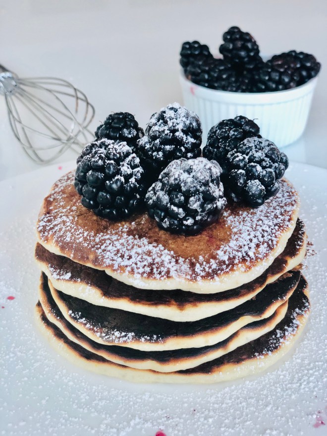 Serve these with fresh blackberries, butter, and a generous drizzle of maple syrup.