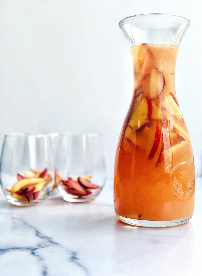 The recipe is flexible – use whatever stone fruit you have lying around. Think anything with a pit: cherries, peaches, nectarines, apricots, or plums. If you don’t like elderflower liqueur or can’t find it, you could try raspberry, peach, or orange flavored liqueur. And if you’re feeling a little extra, you can throw in some fresh herbs like thyme or basil. The only thing I strongly recommend is using a dry, Provence-style rosé.