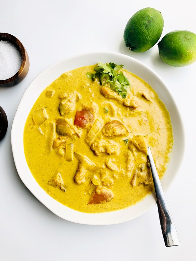 I’ve been eating low carb for a couple weeks just for a quick reset. And honestly, it’s been tough. I haven’t been feeling as inspired to cook or to share recipes. But this curry is so flavorful and satiating that it brought me out of my funk. It’s even delicious with cauliflower rice.