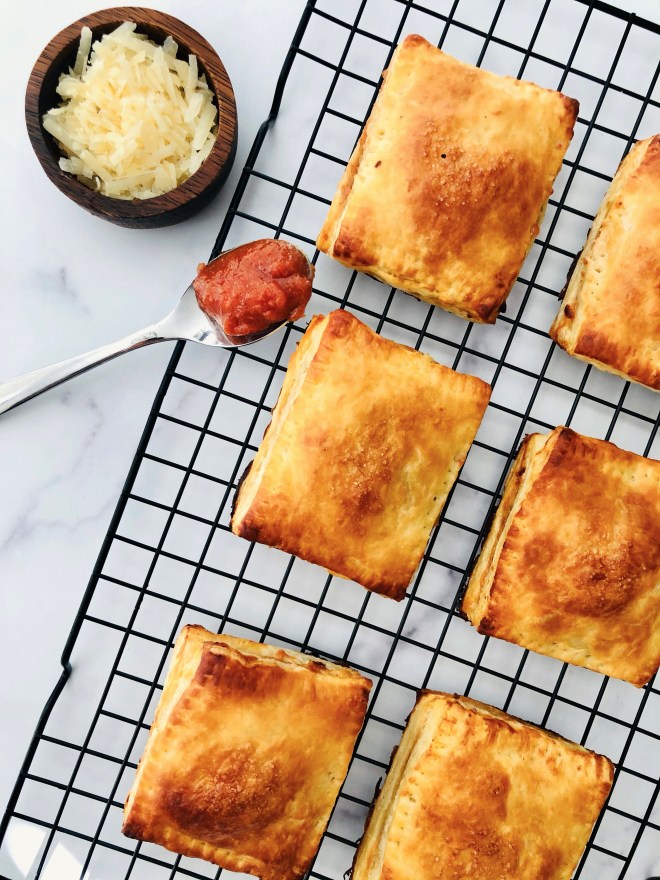 Assuming you have the purée handy, the basic recipe is only 4 ingredients and perfect for novice bakers. The secret is using storebought puff pastry, which gives the pastries a flaky, crispy crust. I used Pepperidge Farm, but you can use any you like.
